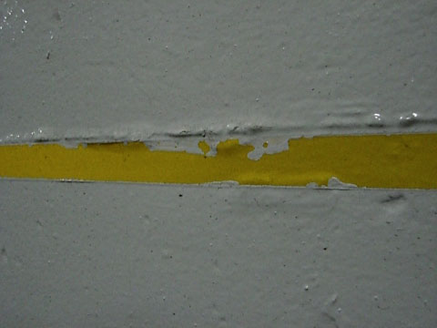 近づいてよく見てみると、黄色のテープはしっかりと残されている。