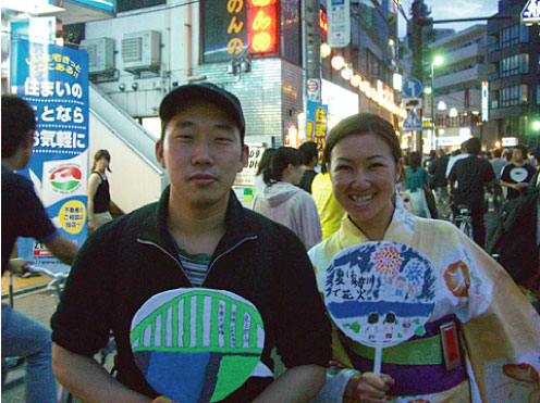 気に入ったうちわが決まったら、それを手に持って記念撮影し、そのうちわを作ってくれた子供に送るメッセージを書いてもらう。