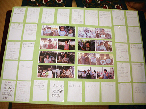 押しかけ授業を企む者から、小学校へ、児童からまちへ、そしてまちから人へ。次にこの逆の流れが、記念撮影とコメントを取る行為によって始まる。発信者が受信者になり、受信者が発信者となる、コミュニケーション上のサイクルとでも言おうか。