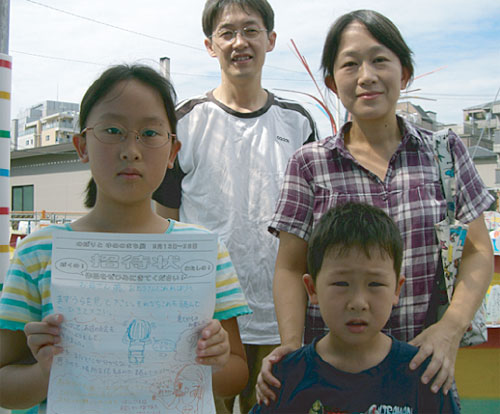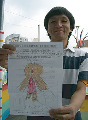 突然こどもから お手紙が 届く。そこには「きてね!」 の文字。