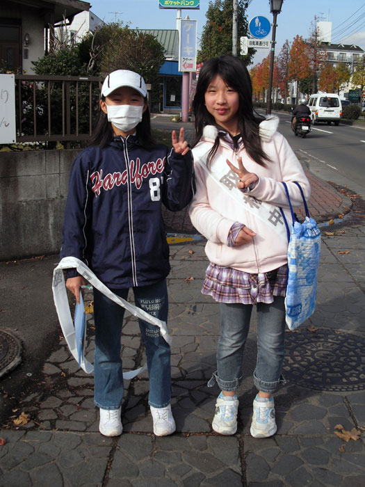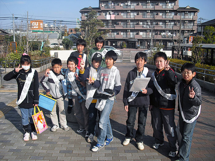 できあがったチラシを手に、下校途中にいろいろな所へ行って、プロジェクトの説明をしながらチラシを手渡す。