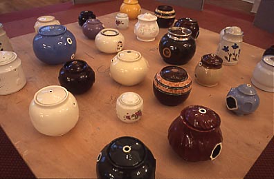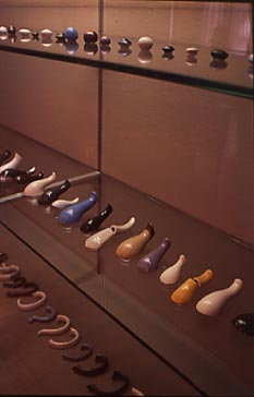 Handles and spouts are placed orderly on the showcase looking like a display in museum, implying new meaning for objects that used to be mere parts.