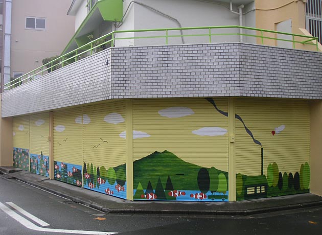 “Horizon Series” 2006 version is a Shutter painting. The subject matter was the future of the city, which is doomed to sink due to global warming. Behind the “funny and lovely” look is its poisonous side.