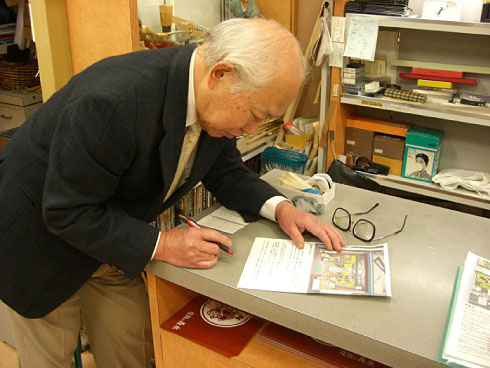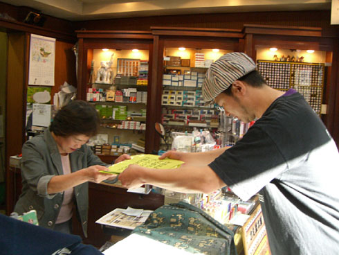 ふきだしに店が埋もれるほど貼らせてくれた錦章堂さん