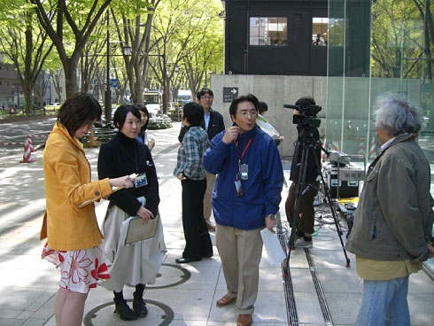 向こう側の人たちは信号待ちの間にこのイベントのことを知る