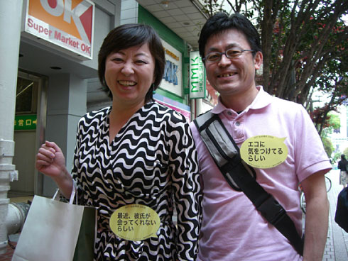 「シャレが通じないらしい」というバッジを選んだ女性。十分シャレが通じている