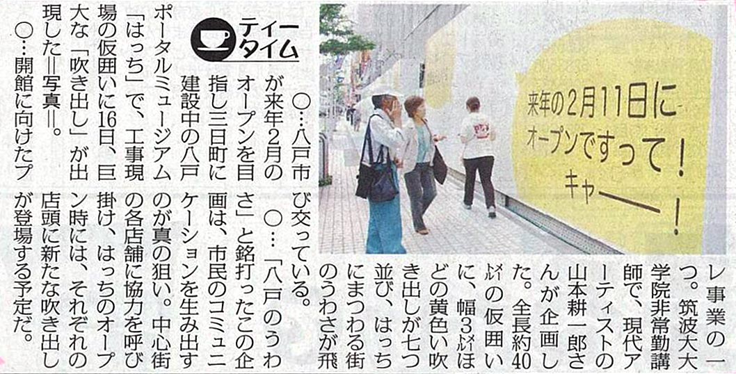 2011年2月のオープニングに向けて、青森県八戸市で滞在制作を行います