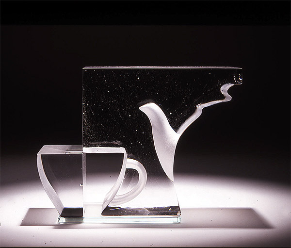 The domestic objects I cast in glass reject function more directly, and are made with their handles or spouts turned in on themselves. The objects I make have never existed before. Nevertheless, the understanding that everyone has of ordinary objects helps the operation of recognition that actually happens without conscious thoughts. My work takes the form of both object and experience.